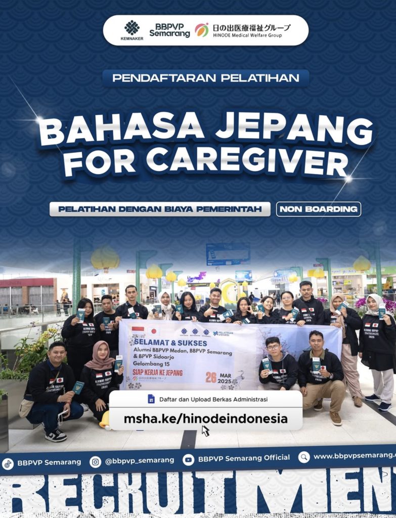 BBPVP Semarang bekerjasama dengan Hinode Medical Welfare Group membuka Pendaftaran Pelatihan Bahasa Jepang for Caregiver.