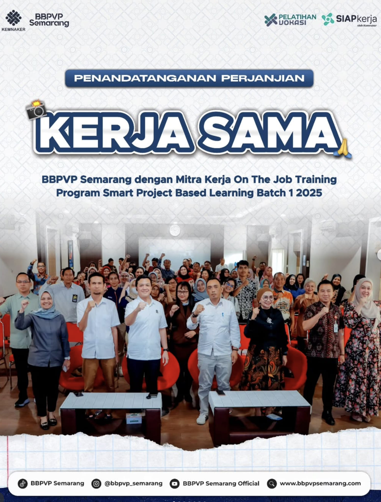 Semarang – BBPVP Semarang bersama 57 perusahaan, instansi pemerintah, industri, dan pelaku usaha di Jawa Tengah resmi menjalin kerja sama sebagai mitra tempat pelaksanaan On The Job Training Program Project Based Learning Tahap 1 2025.